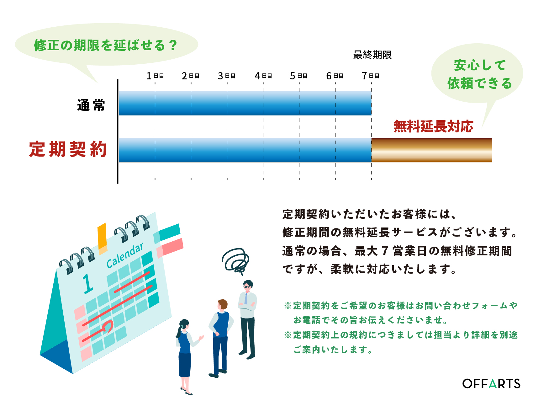 ご納期に応じて修正期間を無料で延長させていただきます。