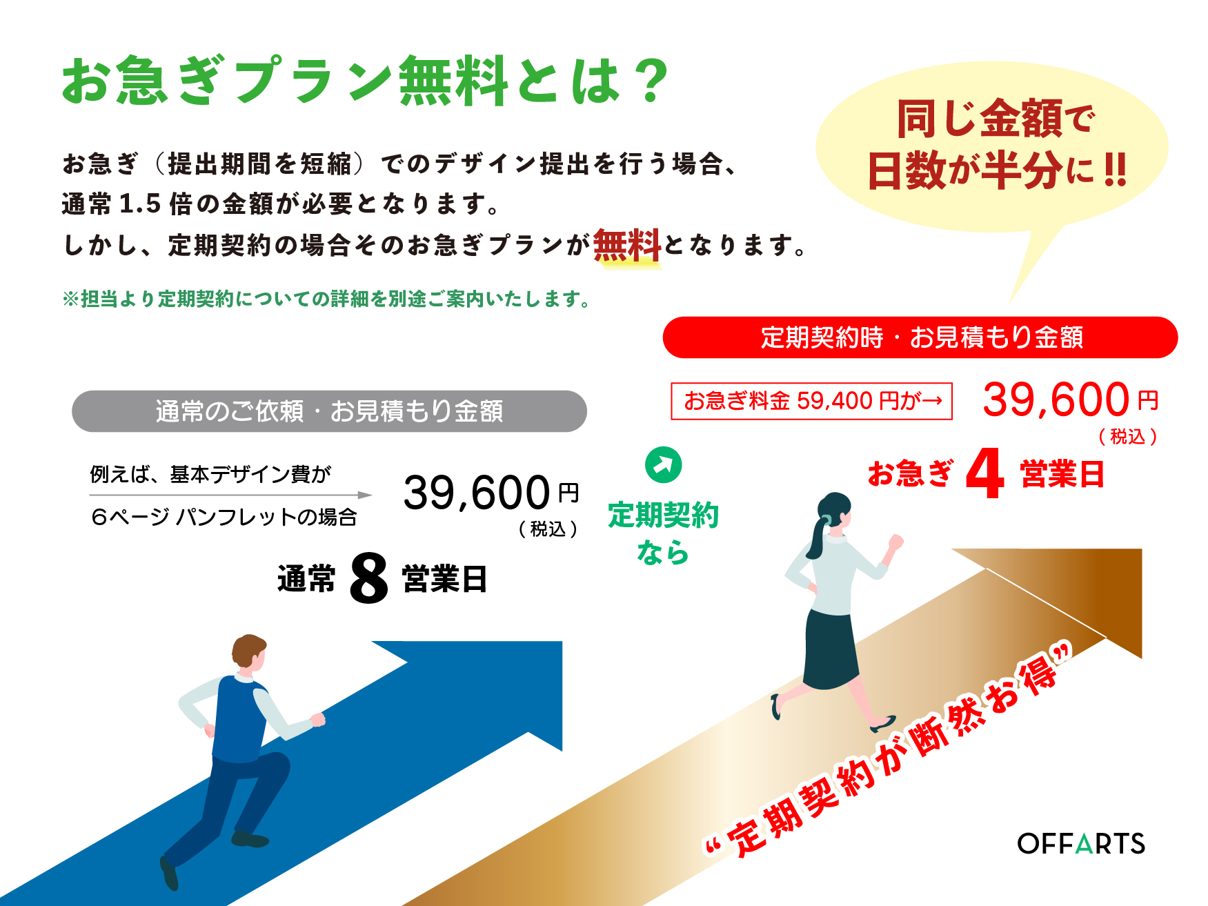 通常1.5倍の金額となるお急ぎプランが